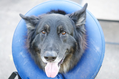 Argo has been chewing at a spot on his leg where he had a cyst. The cyst is totally benign, and it was getting better, but he will not leave it alone (which is not uncommon behavior for German Shepherds – they’re a little obsessive sometimes). And since “It won’t get better if you keep picking at it,” makes little sense to a dog we resorted to putting the e-collar on him.