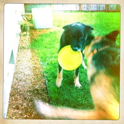 I’d guess the favorite of both dogs has got to be their Kongs (though I don’t think of that as a “toy” so much as “10 minutes of quiet”) stuffed with kibble, oats and peanut butter, then frozen solid. Aside from that, Nylabones, tennis balls and those skineez – at least until they kill the squeakers!
