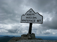The thing about Whiteface is that the trail isn’t very nice. The only people who bother to hike up it are people who aspire to be 46ers, because there’s a drivable road going up to the top. There’s a snack bar, and an elevator from a lower parking lot to the summit marker. Nothing like climbing 4,867 ft to eat crappy nachos at the summit in a snack bar full of people who drove up the mountain in their air conditioned cars and couldn’t seem to figure out why J an I were so dirty and smelly.